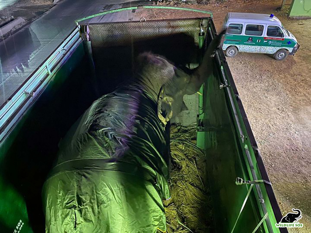 动物保护人士在跨年夜赶去营救,通过一辆专门设计的救护车,将艾玛从印度东部运往北部城市马图拉,全程一千六百多公里。