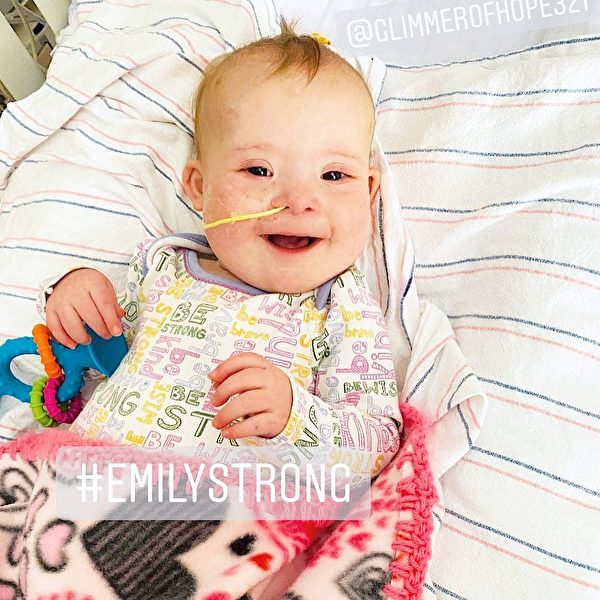 虽然他们的奇迹宝宝艾米丽有两种严重的心脏疾病:右心室双出口(a double outlet right ventricle ,简称DORV)和心房间隔缺损(an atrioventricular septal defect,简称AVSD)。并患有唐氏综合症,但令人难以置信的是,艾米丽并不需要马上进行心脏手术。
