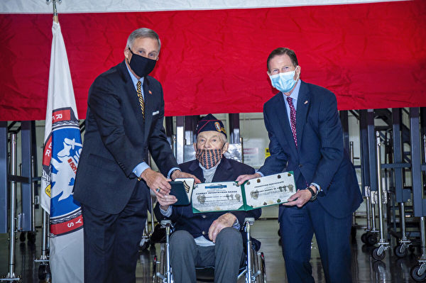 1月4日,在康涅狄格州东格兰比(East Granby, Connecticut)的布拉德利空军国民警卫队基地(Bradley Air National Guard Base)举行的颁奖仪式上,美国海军副部长格雷戈里‧斯拉夫尼克(Gregory J. Slavonic)说:“今天颁奖仪式迟到了将近76年。”