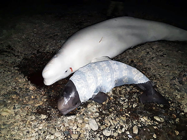 马夫洛诺夫表示,帕拉莫诺夫检查了这些白鲸的身体,他发现它们身上有被鸟类啄伤,但伤势不严重。他并没有在白鲸身上浇水,因为这样做可能会让它们因为低体温症而丧命。