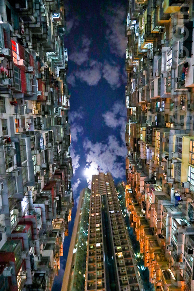 夜幕降临,明月高升。点点灯火骤起,仿如狮子山下万家灯火,别具另一片景色。其稠密的高楼题材,营造出震撼而又神秘的东方韵味,令人每一瞬间都想用相机的快门好好记录下来。也吸引荷里活的大师们纷纷来此取景。