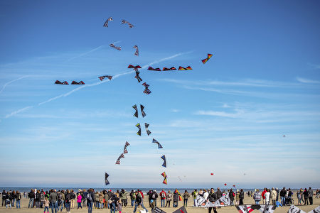 2016年4月12日,法国贝克,人们在第三十届国际风筝节期间放飞风筝。(PHILIPPE HUGUEN/AFP)