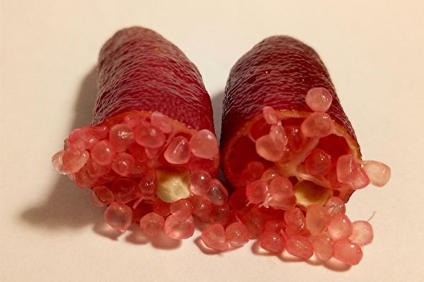 指橙(finger lime)是一种原产于澳洲的稀有水果,在一般的超市买不到。它的果肉呈现颗粒状,犹如鱼子酱,而它的价格也像鱼子酱一样昂贵。