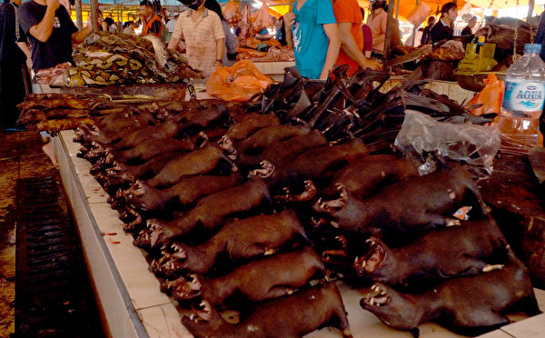 在印尼苏拉威西岛(Sulawesi)的某些传统市场,小猫、小狗、猴子、蝙蝠、老鼠等“极端食物”随处可见。这些动物被大量公开屠宰,整个过程惨不忍睹,而这样的市场甚至还成为观光景点。该国动物保护人士日前公布这些市场的血腥画面,希望唤起人们的关注。