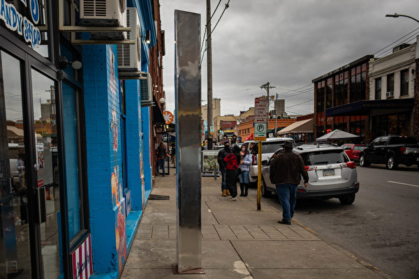 而在12月3日,美国宾州匹兹堡(Pittsburg)的“乔爷爷的糖果店”(Grandpa Joe’s Candy Shop)外面也出现了类似的柱子,但不久便失踪了。
