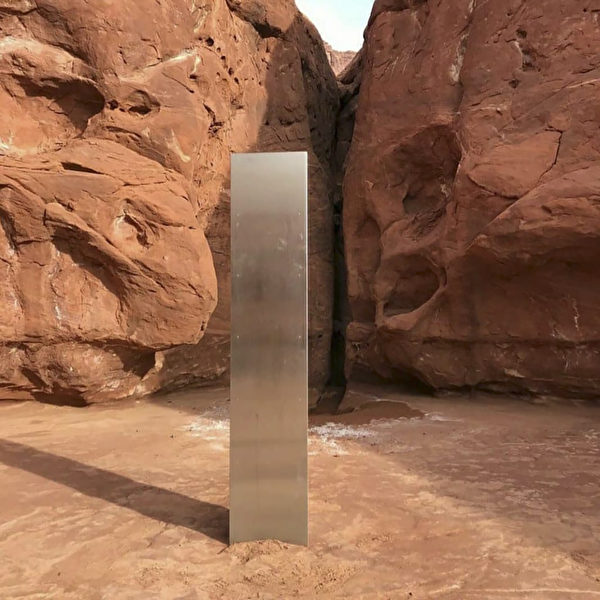 美国犹他州官员在偏远的沙漠地区发现一根巨大的金属柱子,矗立在红色的岩石上,不知何人所为。在消息传开后,这个神秘物体给各地UFO迷或科幻片爱好者带来许多想像空间。