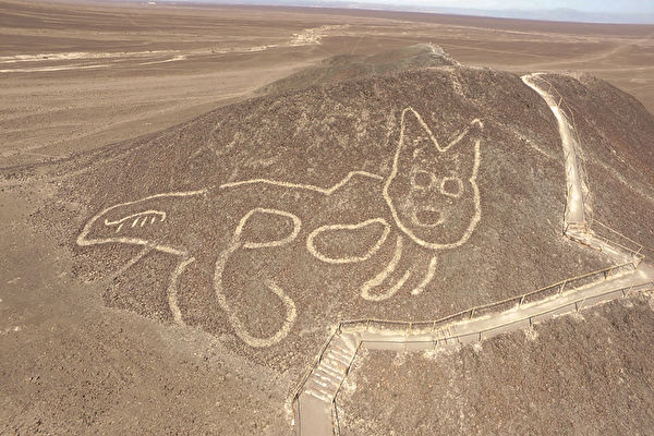 纳斯卡地画(Nazca Lines)是位于秘鲁南部海岸沙漠上的巨大地面图形,它们的存在一直是个谜团。秘鲁文化部近日又宣布,在此荒原地区发现一幅长37米的猫形地画,约有二千多年历史,比著名的纳斯卡地画还要古老。