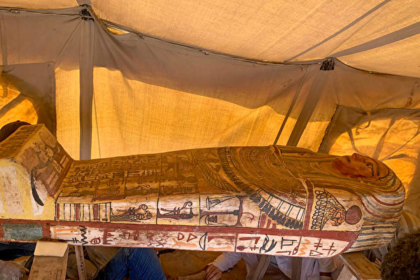 该部门发布的照片显示这些石棺保存完好,依照古埃及传统制作成人形,表面绘有精美人像。石棺上的彩绘也保存完好,上面有鲜艳、华丽而错综的颜色,主要是栗色和蓝色线条以及像形文字画。