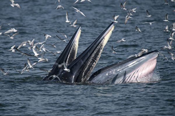 布莱德鲸鱼的饮食主要包括磷虾、红蟹、虾和“各种鱼漩涡”,不过显然不吃成年人。