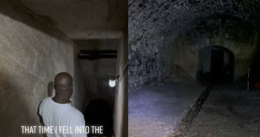从玛雅上传到抖音的影片中可以看到,她跟着史蒂文走到地下室,有扇门上面写着「进入洞穴,风险自负」,史蒂文按下开关,轻轻地踢开门,门后有段楼梯,通往一个漆黑的洞穴,玛雅害怕地跟在史蒂文身后,表示「我不想下去,那里有鬼吗?」