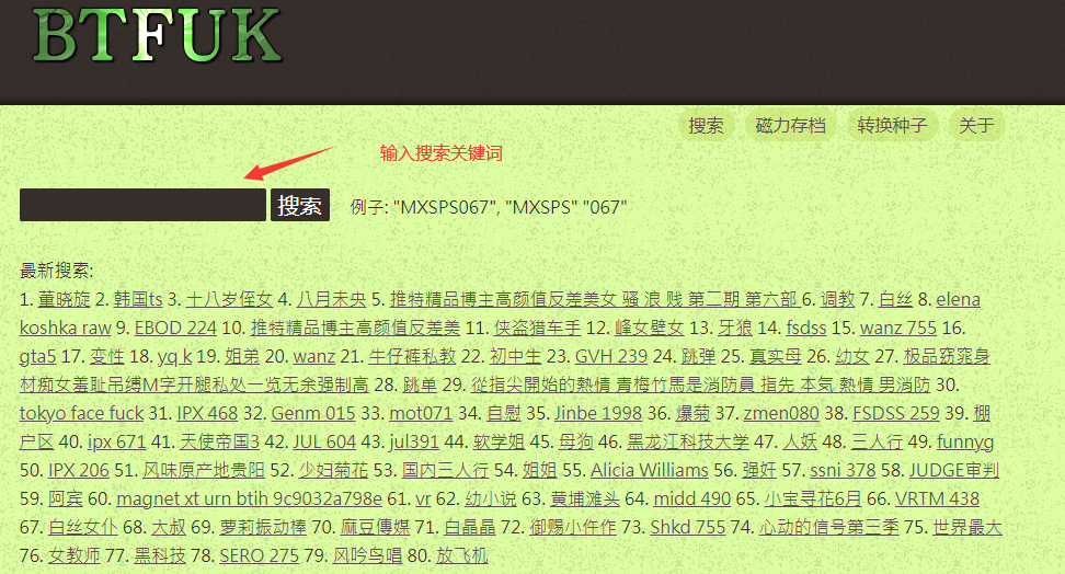 NO1. BTFUK (推荐理由 和老牌的torrentkitty类似 访问速度快 稳定 存档页非常好用)