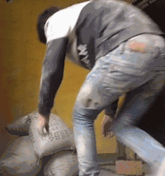 这一看就是表演,我天天扛这玩意,一袋跟玩一样。