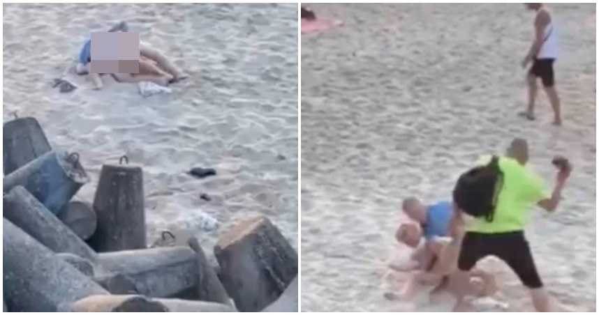 波兰北部滨海城镇米尔诺(Mielno)每到假日就会有许多游客聚集在沙滩上晒日光浴,加上近一半人口已至少接种过一剂疫苗,沙滩上人来人往。未料居然有一对情侣不顾旁人眼光,在沙滩上恩爱起来,直到被正义路人拿拖鞋痛打屁股才离开。