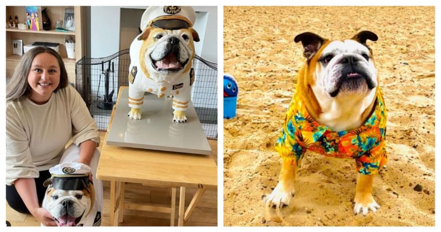 据《镜报》报导,英国一名30岁女子劳伦(LaurenBlake)和他的丈夫基兰(Kieran)养了一只斗牛犬戴夫(Dave),为了欢庆戴夫的9岁大寿,两人不惜砸下3000元英镑(约新台币11万),而他们也在网路上找到蛋糕制作公司的梅森(LaraMason),替爱犬订制一款一比一的狗型生日蛋糕,甚至还要求蛋糕必须穿上水手装。