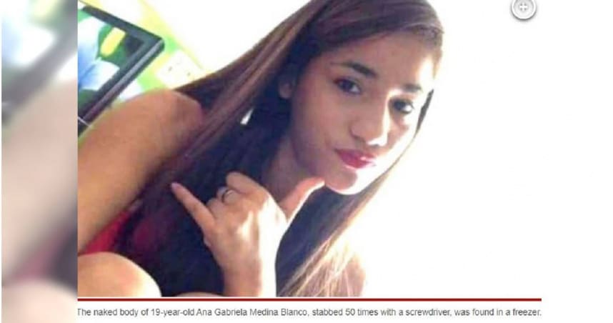委内瑞拉阿拉瓜(Aragua)1名19岁年轻辣妈安娜(Ana GabrielaMedina Blanco),在失联5个月后被人发现一丝不挂,双手反绑、头部夹在双腿间,以胎儿的姿势陈尸在冰箱里,全身还被螺丝起子捅了多达50下。而安娜的同居男友桥苏(Josue)目前下落不明,警方已将其列为嫌疑犯,正全力追缉桥苏,希望尽快将他逮捕到案。