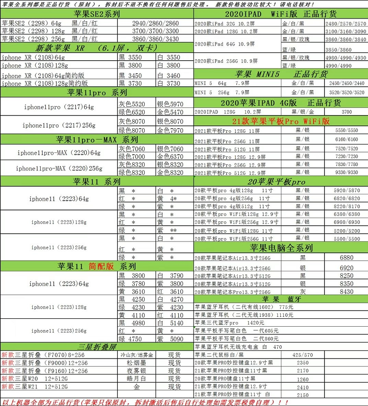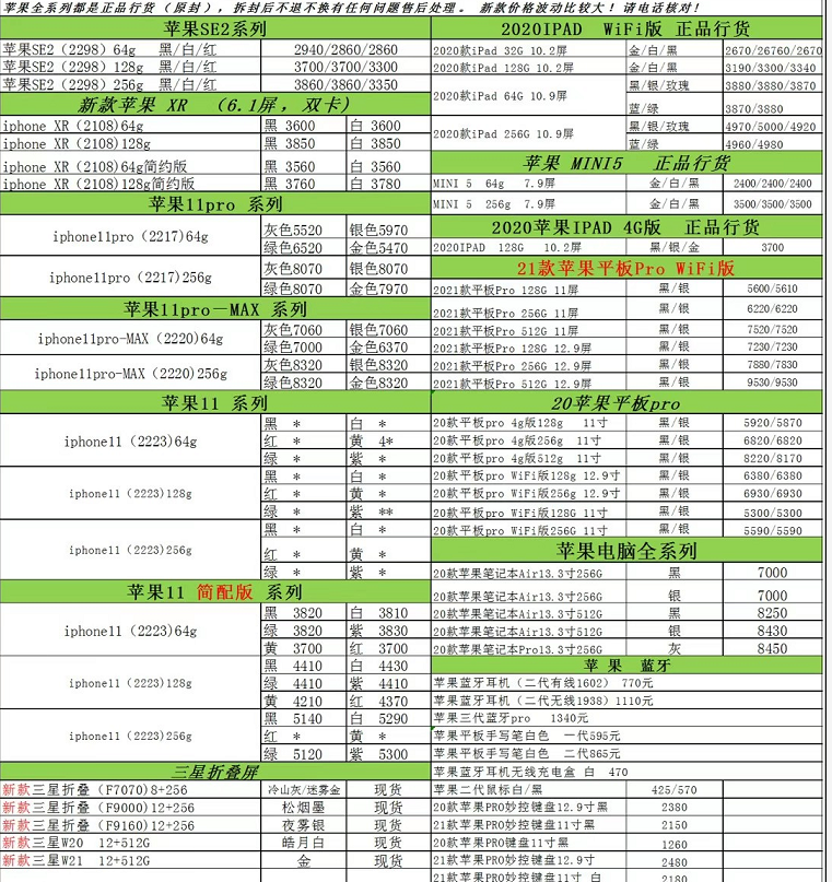 第四张是今天的机型价格