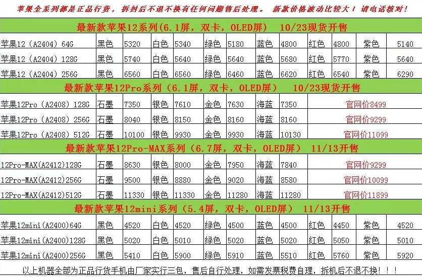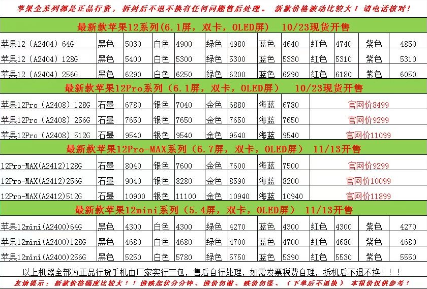 第一张是12号11 和其他机型的价格