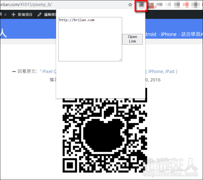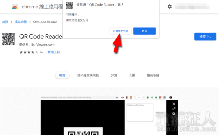 若想在电脑浏览器上直接开启 QR Code 的连结或阅读其中的内容,可以考虑安装像「QR Code Reader」的浏览器扩充插件,本篇介绍的这款是支持 Google Chrome 浏览器使用的,使用其它浏览器的朋友也可以用关键字搜寻看看唷!
