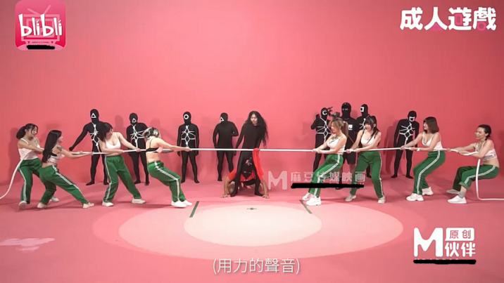 晚上回来的时候,看见PT论坛的群里,有人说麻豆出了个《鱿鱼游戏》的主题AV,就找了一下,别说,还真有。名字叫做「成人游戏 滑溜溜地狱」