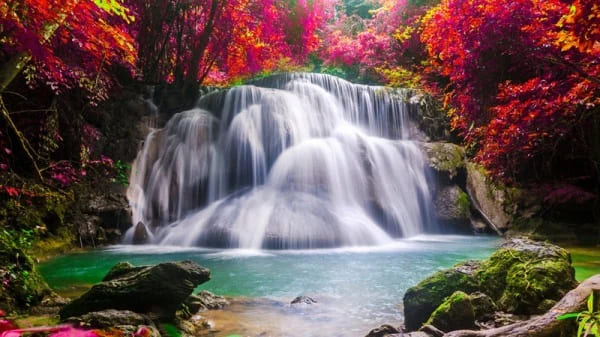 只见那山树木苍翠,岩石峭立,鲜花怒放,野果丛生,又有瀑布飞流,直泻而下,宛如一座美丽的仙岛。(图片来源:Adobe Stock)