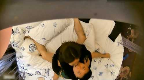 网友流传的视频可见,男主角很有大哥的架式,两人正在酒店床上进行人与人的链接,过程不时发出叫声相当享受,做到一半两人双唇交接,大哥刚好抬头一看,居然发现屋顶被装了偷拍摄影机。