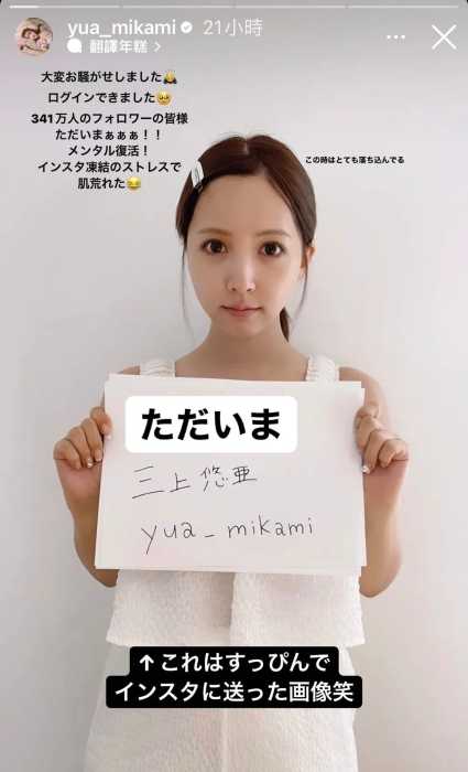 幸好IG帐号有成功救回来,然而几日之后三上悠亚自己又在频道,公开了素颜化妆主题的影片。
