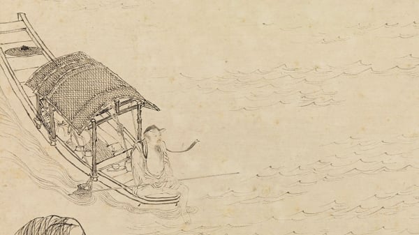 明代仇英柳塘渔艇-此图或系陶渊明归园田居的生活写照。