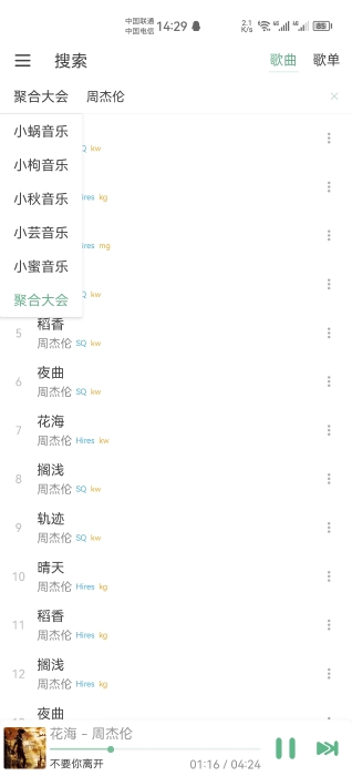 本软件包含了主流平台歌曲:咪咕+酷我+网易云+酷狗+虾米