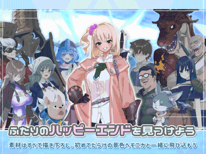 玩家扮演的冒险者偶然邂逅一位辣妹女冒险者“モニカ”,因缘际会下两人一起攻略迷宫,寻找深处的宝藏「幸福的化妆箱」,两人合作踏入了魔物徘徊的迷宫中...。
