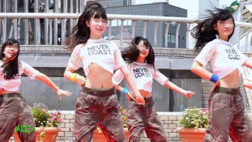 这群可爱女大学生在某个夏天祭典,穿着白T恤、迷彩裤在台上表演热舞。