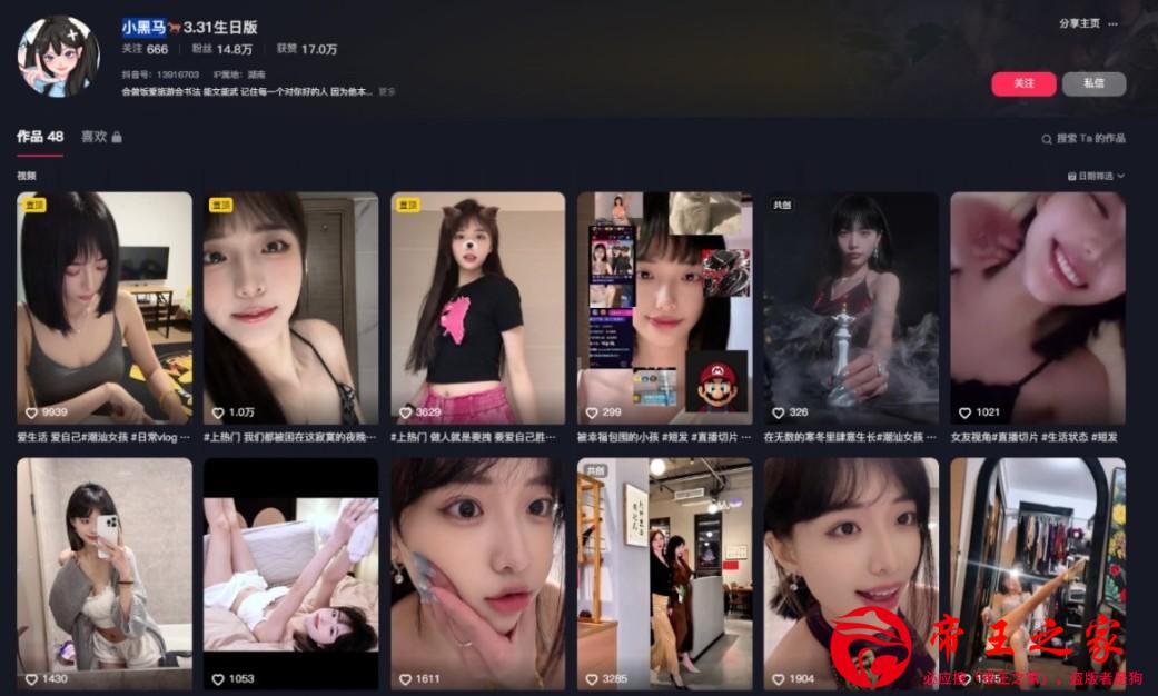 据了解,抖音网红「小黑马」是位潮汕女孩,生日才刚过的她曾是个模特儿,有着清纯的脸蛋以及纤细窈窕的身材,经常在抖音平台分享短影片,固定开直播与观众互动,目前粉丝累积达14.8万。