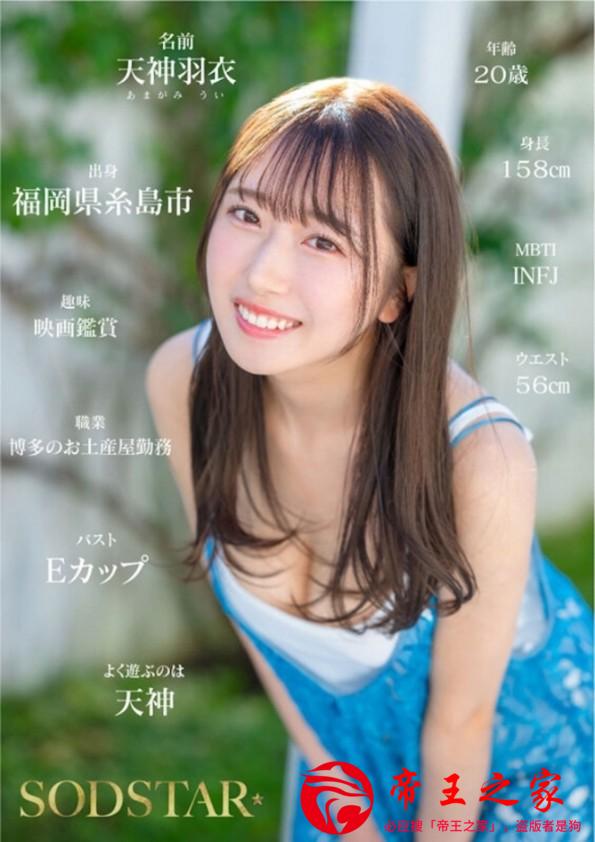 片商SOD在近期推出了颜值超高的新人,她叫做「天神羽衣」,今年20岁,身高158公分,主打是从福冈100%新鲜直送的辣妹,有着出众的透明度、E杯美R、56公分的纤腰,爱好看电影,之前是在博多的纪念品店当店员,因为长相可爱,十分受到欢迎。
