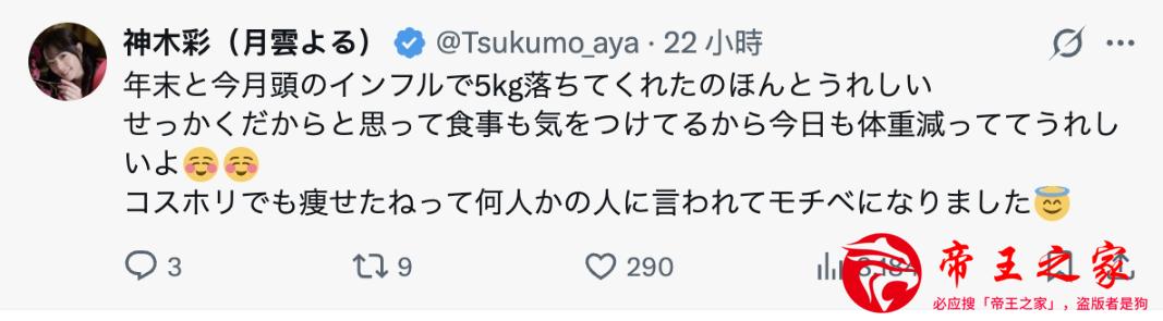 也就是说比去年的时候,神木彩瘦了超过5公斤,外型变苗条清楚可辨,在活动上很多人都说她变瘦了ー这也让神木彩更有减肥的动力,接下来要继续努力: