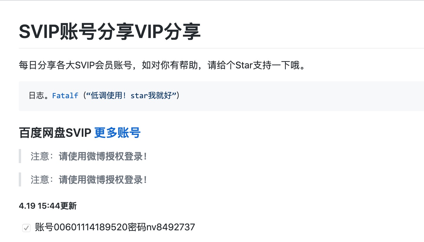 Github上几个分享会员的项目,主要以百度网盘会员分享为主,也有迅雷会员、爱奇艺会员、优酷、腾讯、芒果等VIP等。