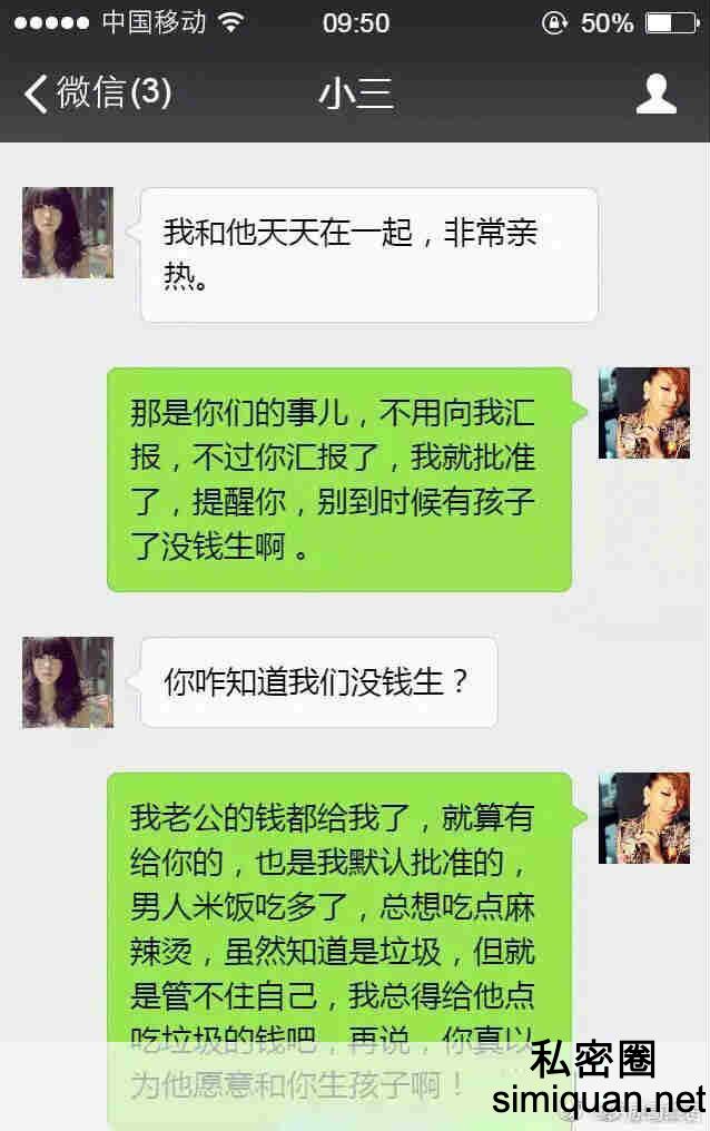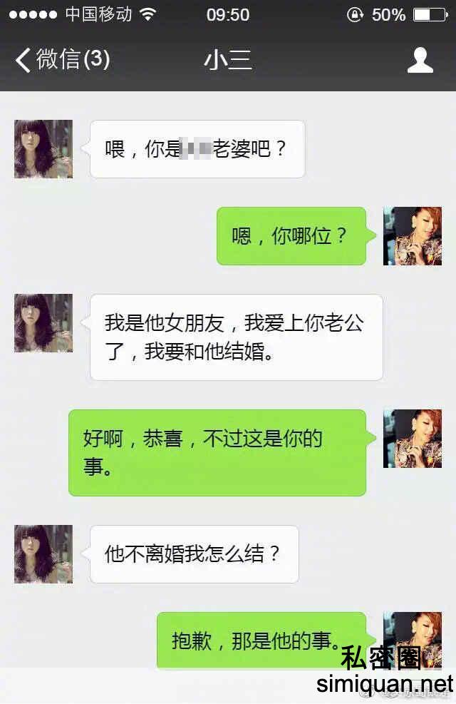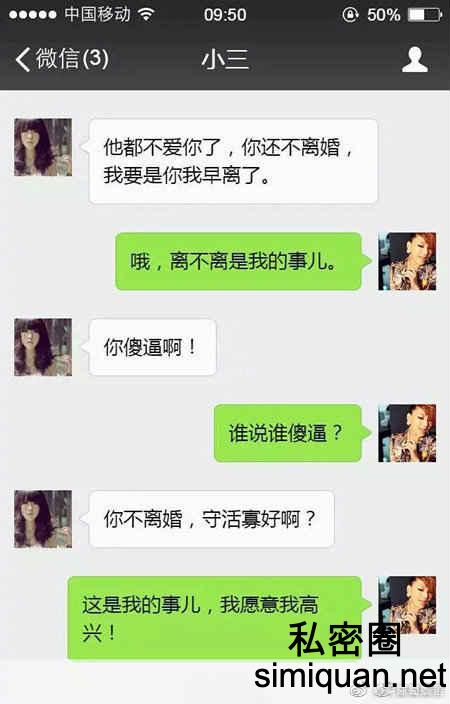 作为原配遇到小三的挑衅你回怎么办?怼回去吗?还是有更暴力的解决方法?我觉得大部分的人都会不淡定吧。毕竟自己老公被她抢走了,她不仅不躲着,还舔着脸找事。搁谁身上谁也受不了。不过今天在微博上看到了一个淡定姐对这件事的处理方式。真假我们暂且不论,如果真能做到以下的方式。我还是挺佩服这位姐姐的处理方式的!