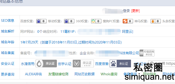 通过验证短信发过来的短域名链接复制到浏览器解析得到网址xx.xxxx.xx好家伙这网址一看就不是移动官方旗下的,在通过站长工具查询该网址解析到阿里云且未启用cdn,该域名持有者系广东一家某科技公司,域名到今年11月份就到期了,在通过搜索该企业发现经营异常这四个大字,我这好几千的话费肯定是凉透了。