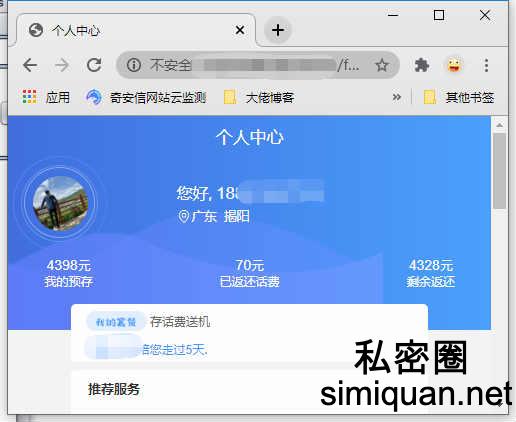 目前初步找出两个登陆界面,后台登陆是没有验证码的可进行爆破操作,但前提条件是知道商家的手机号,这里就先正常登陆我自己的用户瞧瞧里面有无可利用的地方,功能很简单并无可利用的地方头像处也无法进行编辑上传等操作该界面也只是提供显示话费的总额,我猜他们搭这样一个平台也只是显示个数字前几个月唬住消费者。
