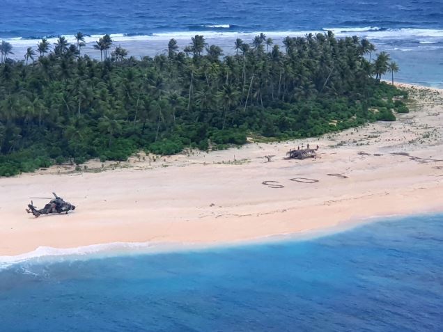 美国与澳洲军方2日在太平洋密克罗尼西亚(Micronesia)群岛的一个无人岛派克洛特岛(Pikelot Island)海滩上,发现巨大的「sos」字样,救起了3名漂流3天的水手。