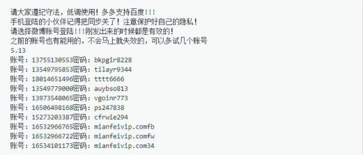 其次推荐使用百度网盘VIP账号,有热心的网友已经整理好了大量的VIP账号,并分享出来了,直接使用VIP账号登录即可享受不限速下载了。