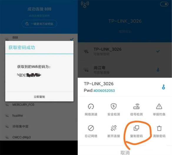 第一个:WIFI万能钥匙(可显示密码可复制密码)